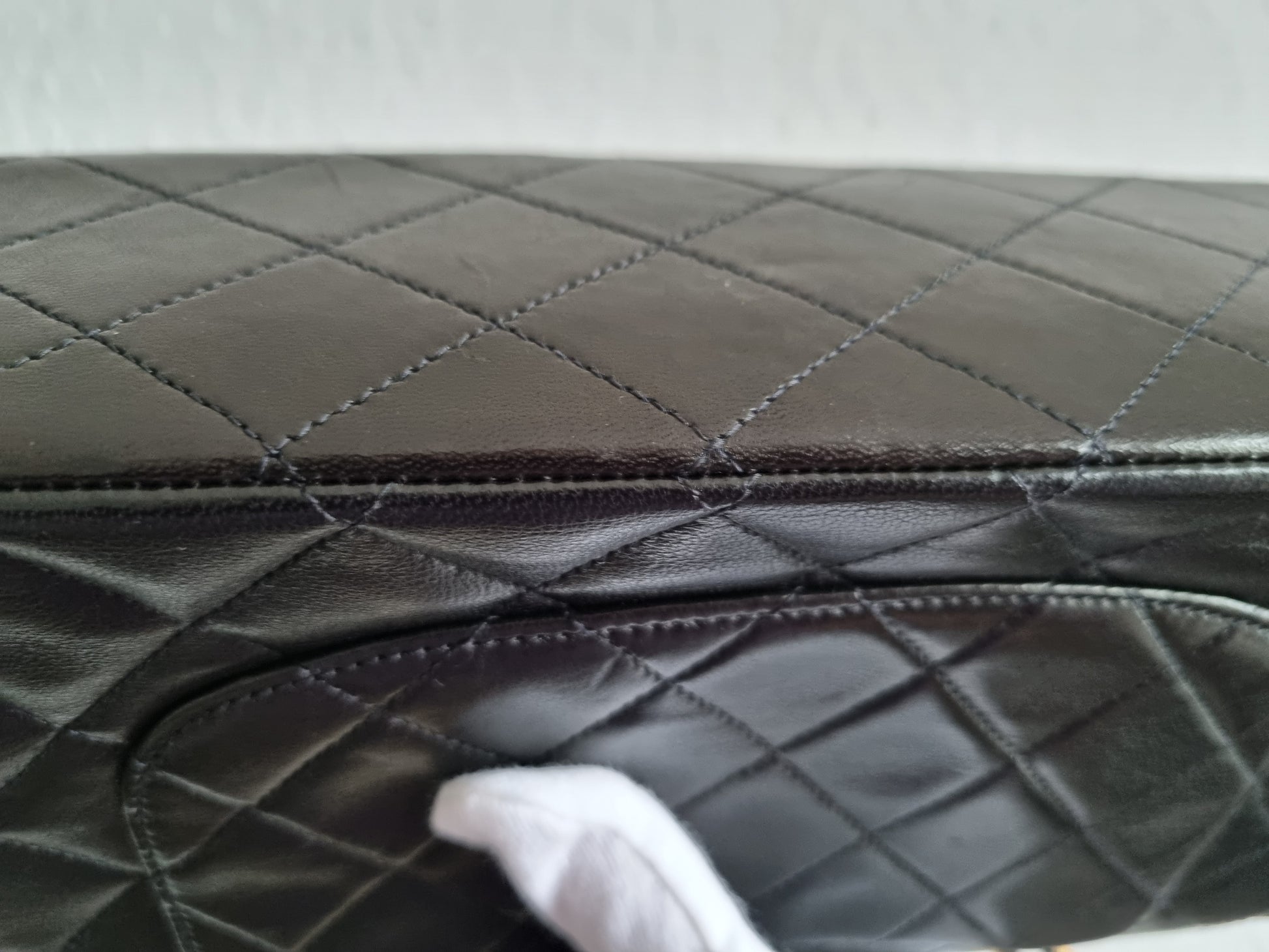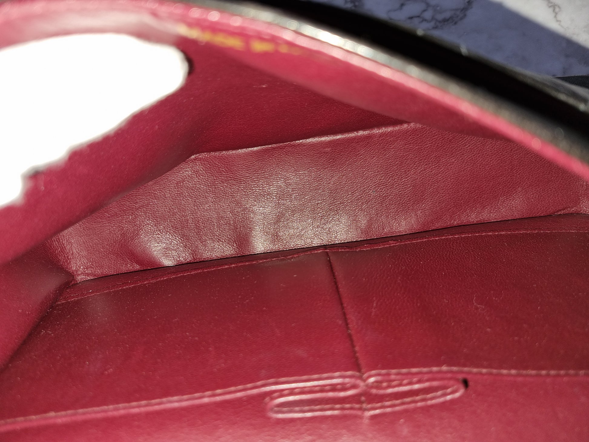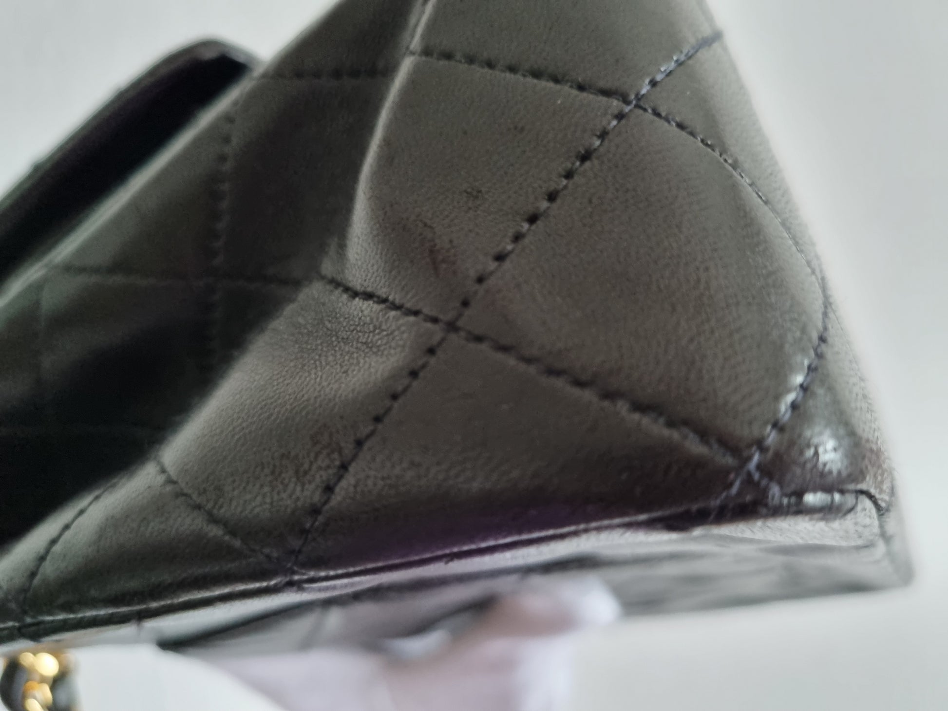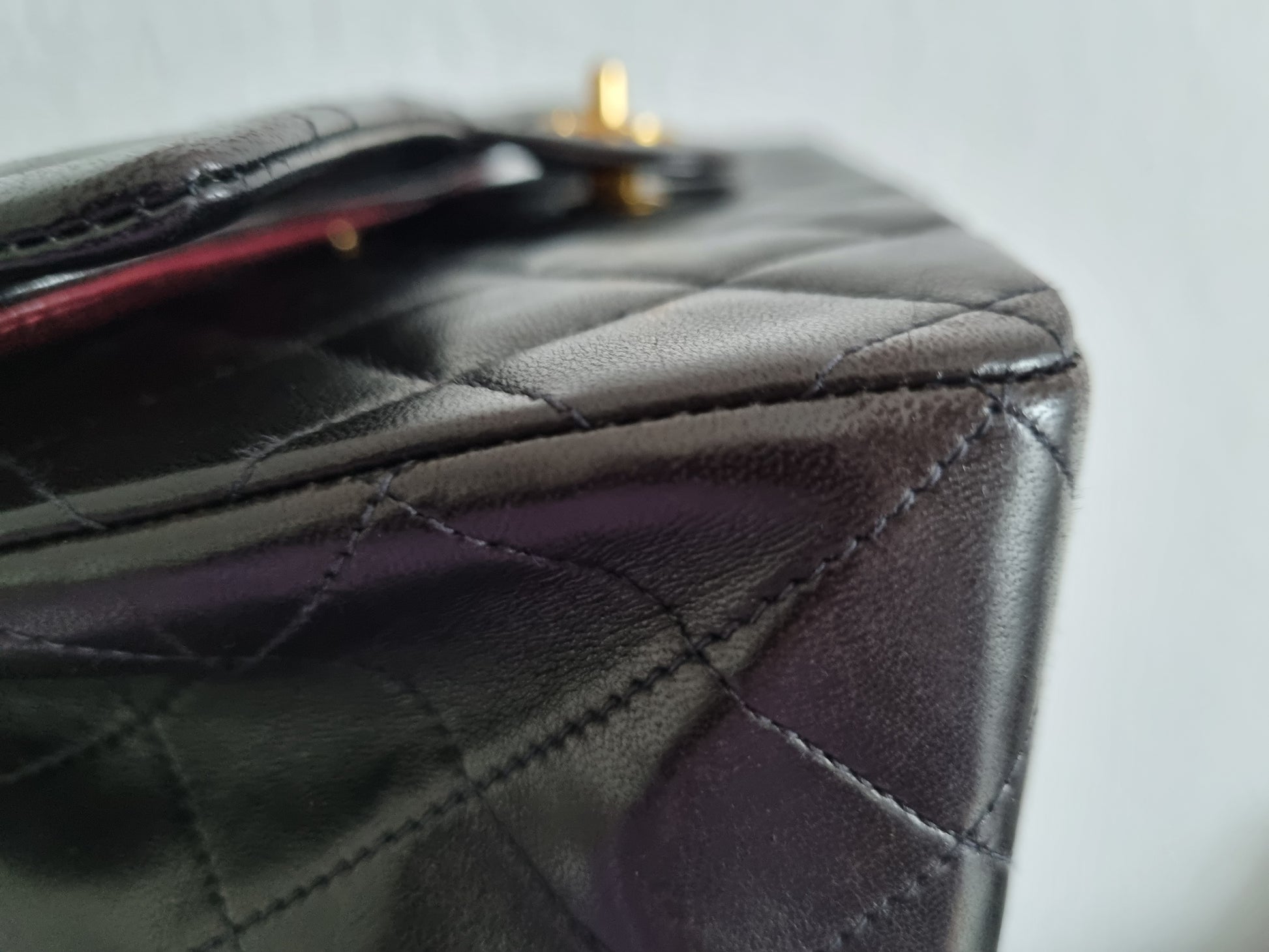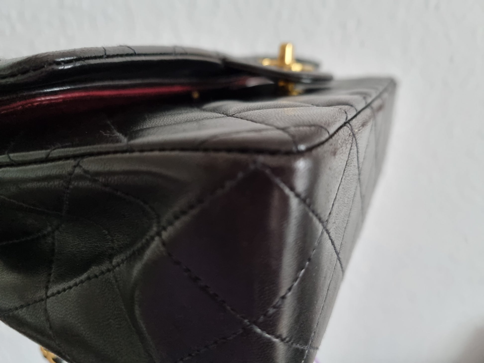 - die Ecken und der vordere Rand am Taschenboden und die Ecken an der Flap haben Gebrauchsspuren