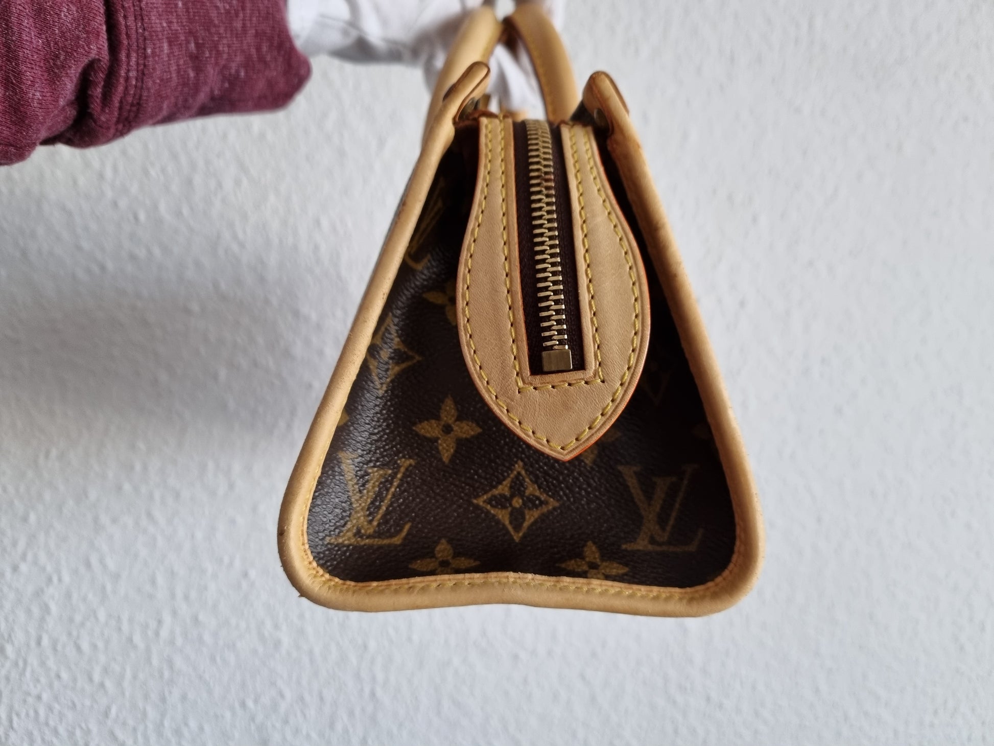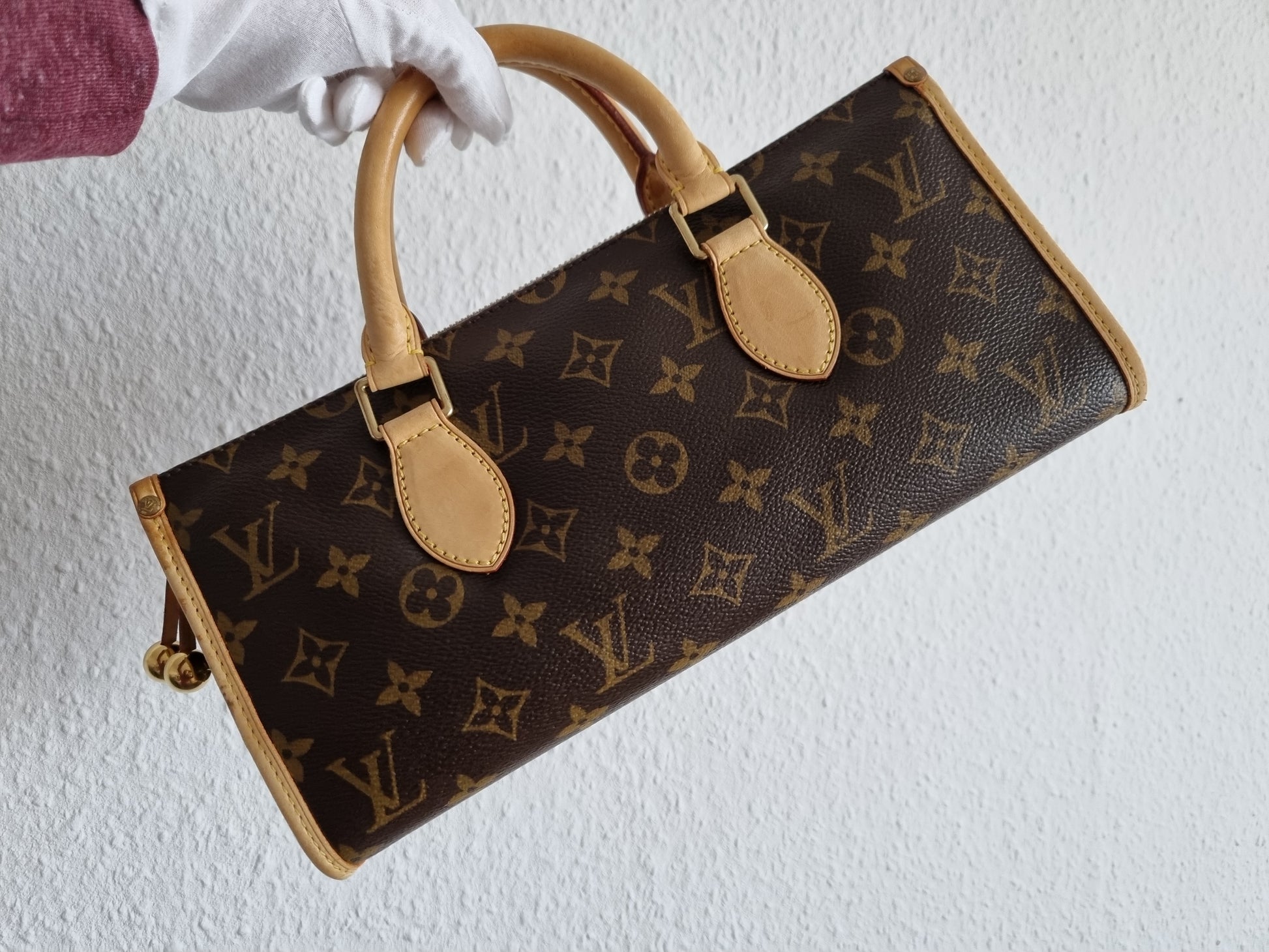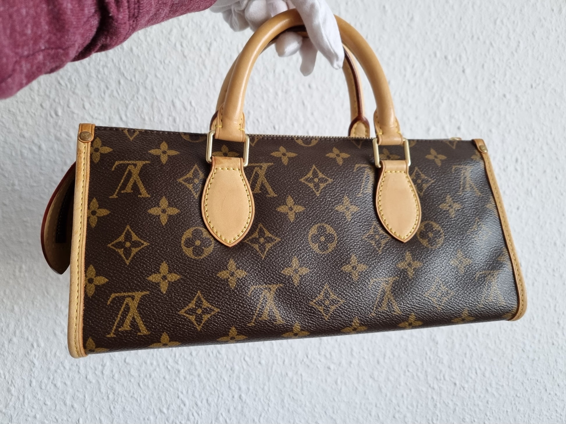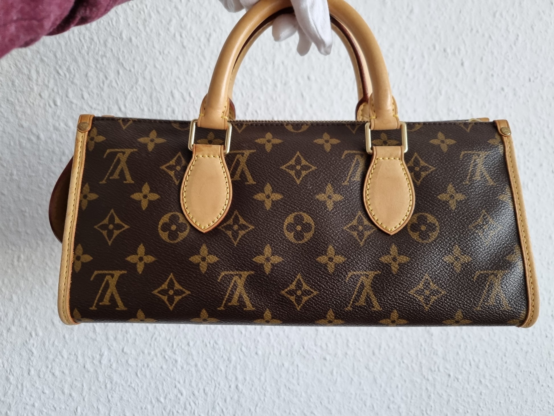 Die Handtasche Popincourt von Louis Vuitton verzaubert mit dem besonderen Design, dem zeitlosen Monogram-Canvas und den verspielten Details am Reißverschluss. Trotz der kompakten Maße passt überraschend viel in das Täschchen rein und kann bequem in der Hand getragen werden. Die Louis Vuitton Tasche wird mit Entrupy-Echtheitszertifikat geliefert.