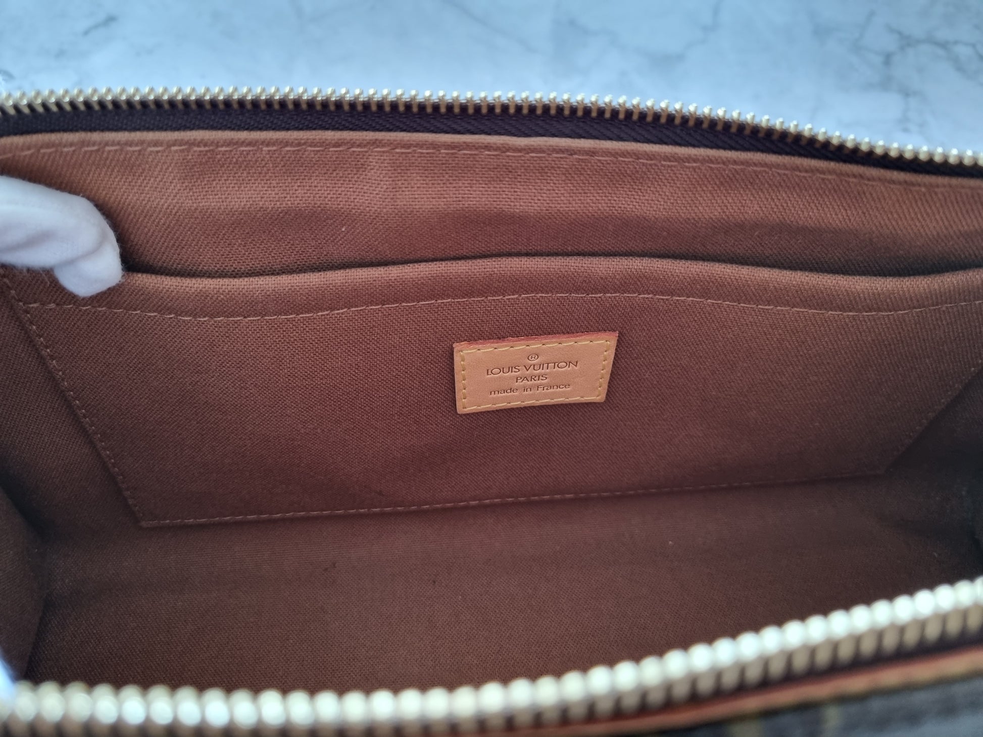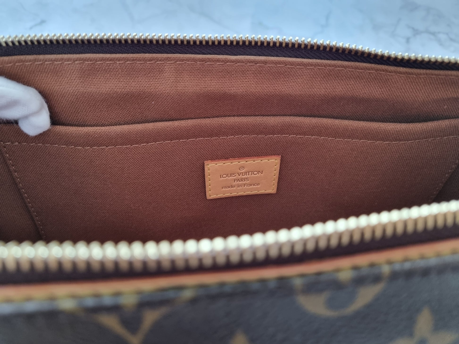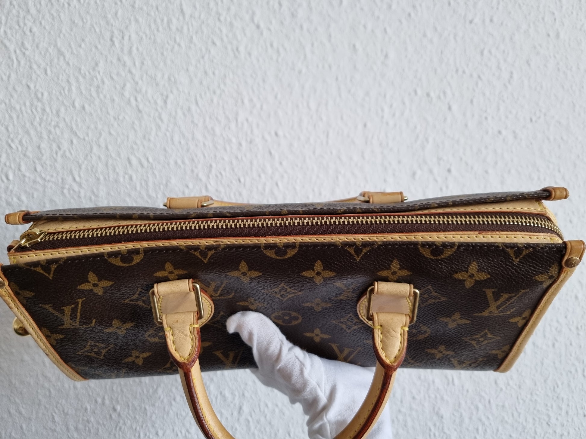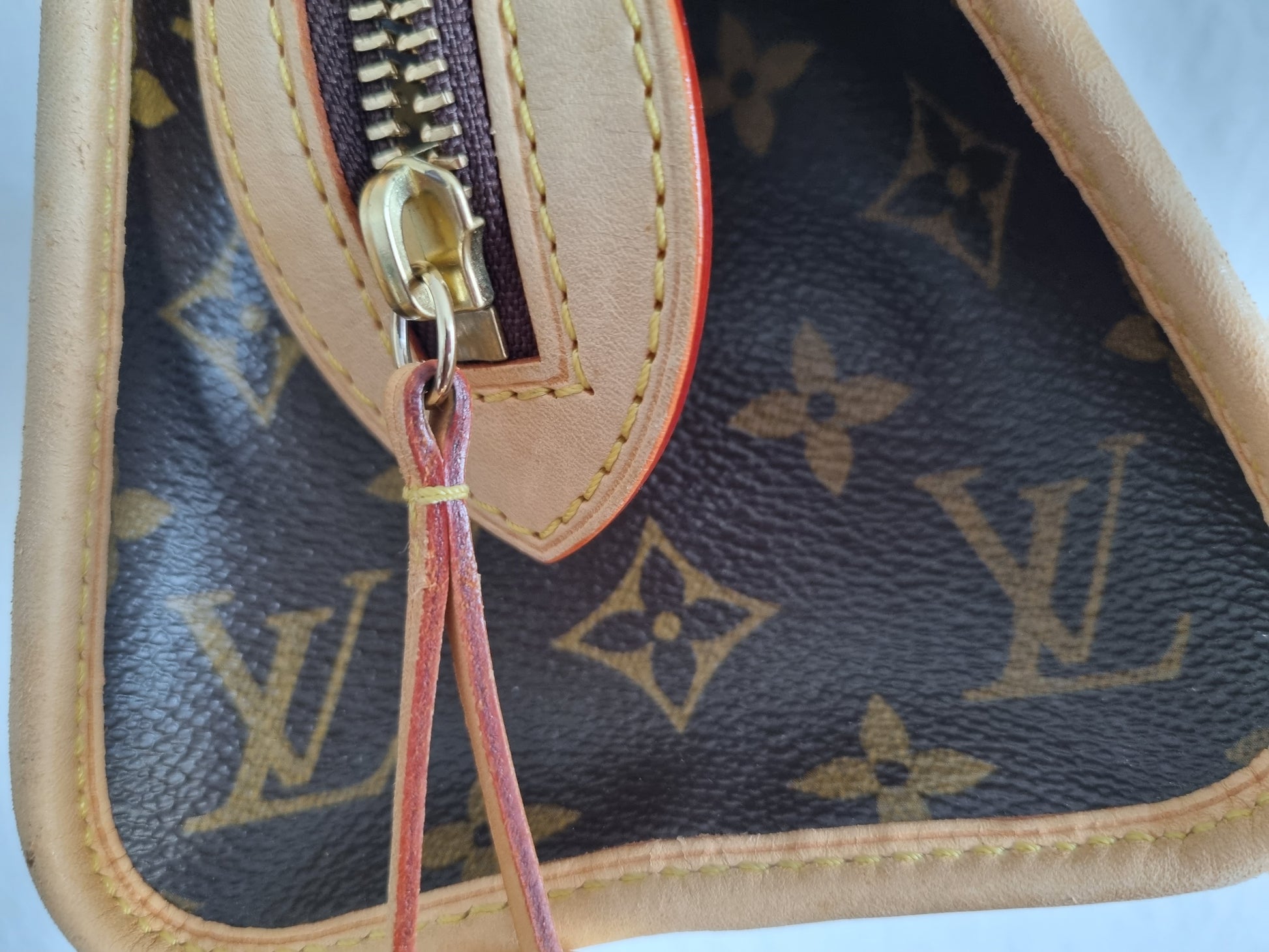 Die Handtasche Popincourt von Louis Vuitton verzaubert mit dem besonderen Design, dem zeitlosen Monogram-Canvas und den verspielten Details am Reißverschluss. Trotz der kompakten Maße passt überraschend viel in das Täschchen rein und kann bequem in der Hand getragen werden. Die Louis Vuitton Tasche wird mit Entrupy-Echtheitszertifikat geliefert.